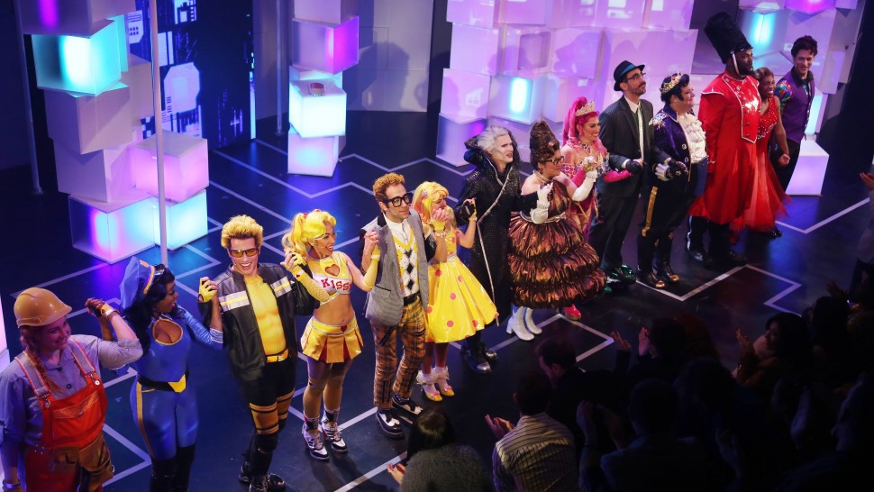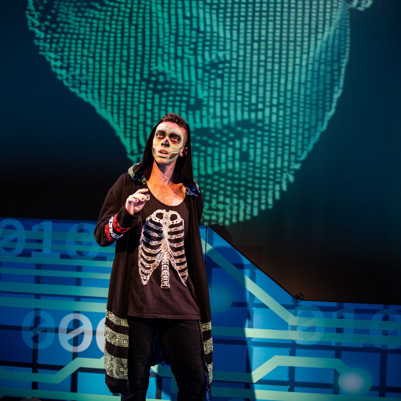 The skull emoji (☠️ for reference) is one of the greatest characters in this musical with his performance of the song ‘Cross my bones’ being performed flawlessly. Lucas Steele, who plays the skull, is clearly a very talented performer with his rendition of this song being hauntingly beautiful due to the dark nature of the song. The accent and pronunciation choice Lucas had chosen worked perfectly with the character and helped add to the mysterious nature which is fantastic! The sassy duo (as I will now refer to them) of the prince and princess (played by Josh lamon and Lesli Margherita)return with a passion when they perform the song titled “firework ball” which song celebrating the installation of the new firework which will potentially stop the introduction of new more powerful emojis. Josh Ramon showcases his rapping ability excellently and helped to create the party celebration vibes of this number. Through the song, I can only imagine the visual spectacular being staged and I personally hope it contains lights and dancing galore! There is also a section of this song that is almost a relaxed idea of dubstep which was the icing on the cake. I am honestly in awe as to how the creative team working on ‘Emojiland the musical’ has managed to capture so much tension and drama into the song titled simply “virus.” It is a chaotic number full of audio effects on the performers’ voices to depict an electronic virus causing glitches etc which was excellent. This song marked a drastic change in the musical to a more serious and dramatic nature. The song “a thousand more words” is a very emotional and moving song that touches on ideas of loss which everyone can relate to. The next song “start again” was a great way to start the pick-up and return to the high energy of the beginning of the show. Both Lucas Steele and George Abud voices work beautifully together to create this almost showdown type number that builds back the excitement to the last two songs which I imagine when performed lived will have the audience leaving the theatre with a feel-good feeling!