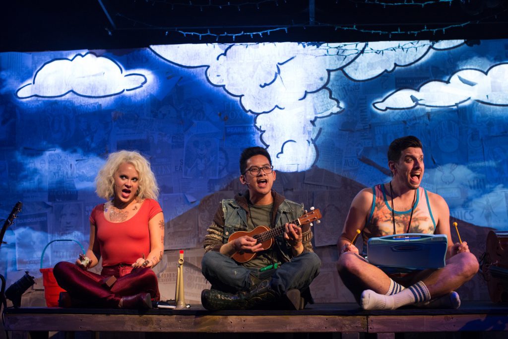 This show seems to me like a musical that could excel as an animated musical due to the superhero influences and modern references and I believe that have live-action performers may reduce the supernatural elements. The story follows a young man that after an interaction with a dragon at mount St.Helens (which is a sentence o never thought I would say) Trevor develops superhero-esque powers and abilities while also taking on the appearances of a lizard. Obviously, it would be very difficult to portray this on-stage and think an animated version of the show would really showcase the supernatural elements and play into the superhero influences even more. However, in some senses, I am glad that this is a staged musical as from the pictures I have seen the performers also play instruments in certain song which always impresses me and is an opportunity for the players to showcase their skills/talents.