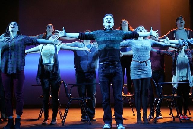 The music in the show combines the usual musical theatre cheesiness with very clever writing and complex ideas which don’t sound like it should work but does. The music is mostly more emotionally driven and subdued but as the focus is on the individual characters that keep the pace up and prevents the more serious songs becoming tiresome. I thoroughly enjoyed the song “The End Of The Line” which was sung by Victoria Cook and Kyra Kennedy who sing about their friendship. It’s a super fun and campy number that plays with the classic broadway musicals people are familiar with. The song talks about how during earlier years one person was super cool and the other was a bit of a nerd but the tables are suddenly turned when they arrive at college which leads to a shocking turn of the event which I didn’t expect and was surprised by how much it affected me. The show captured the jovial bitchyness of friendship while portraying how close these characters are as friends which only made the end of the song even more devastating as it was extremely relatable. These dramatic story twists are something this show does very well as it also happens in ‘Ricky and Me’ which again I did not expect. The song titled ‘Footprints’ was a very emotional and moving song that was all about things you have done well at the same time moving forward. This number was beautifully performed by Robert Ariza who is a very talented performer but his vocals within this song were flawless. While listening to this song I could not but help to think about how every child at least once did the putting paint on their feet and using this to paint a footprint on some paper that their parents put on the fridge at one point. But also it made me think of the famous religious poem that encourages readers to look back at everything they have gone through the get to this point in their lives. These two ideas naturally build on each other and amped the emotional impact of this song which was very clever.