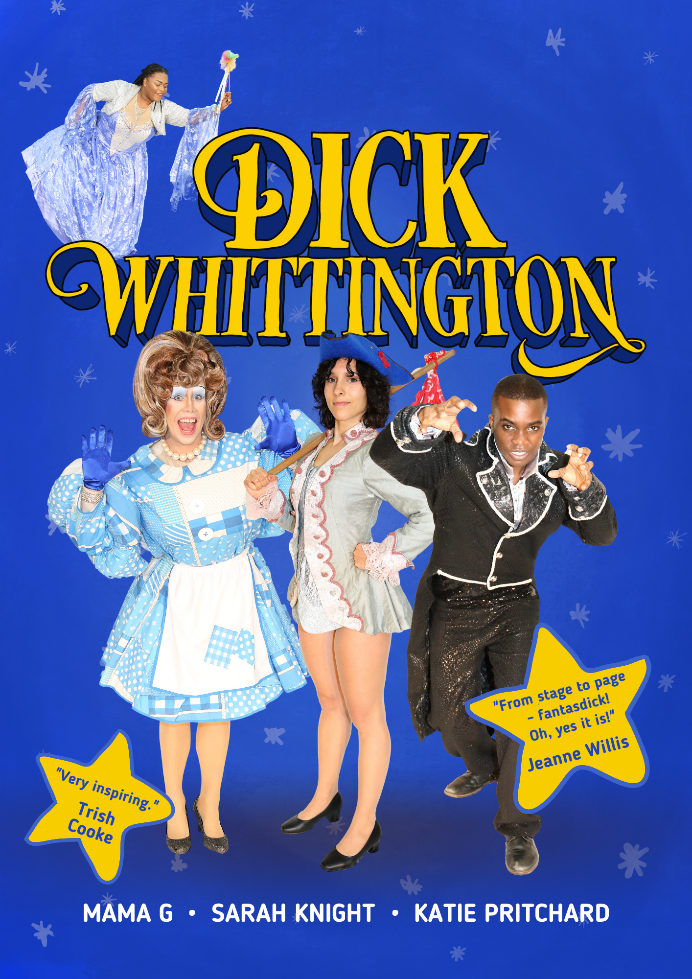 The book is a hybrid of the live models (including Bonnie whack as Dick Whittington, Paul Andre Agagao as King Rat and Mama G herself as Sarah the Cook) who were pictured by Sarah Knight and almost cartoon-esque illustrations that were done by Katie Prichard. The last time I saw Katie she was dancing around the stage singing about her nuts while doing a wonderfully comedic burlesque routine at Mama G’s after-hours pride celebration (which you can read about at https://rhysreviews.com/2021/07/06/moma-gs-after-hours-pride-celebration/) with the pictures capture the whimsical and fun nature that panto usually creates! What I loved about this story is that all of the dialogue within the book have a wonderful rhyme scheme that makes it much for pleasing for any young children. The style of book would be perfect as a way of teaching young refugee children English due to its simplistic language use, fun images and political message!