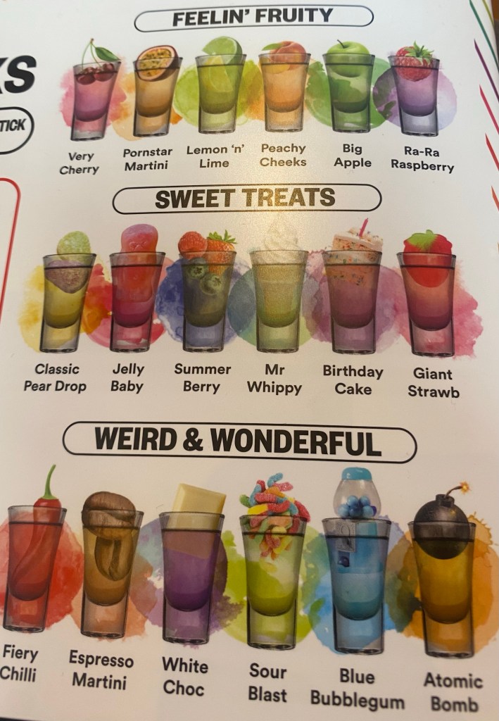 Due to the short delay in arriving at Bristol me and my friend then had to take a short like race across Bristol in order to make it to Revolution in order to make it to our bottomless brunch experiences. Me, my mother and sister all went for bottomless brunch a few much ago in Turtle Bay which was absolutely terrific so I was excited to see how Revolution would compete with the Caribbean restaurant. The first thing to notice about this bottomless brunch experience is that it is around thirty pounds per person and so is not something you could viably do every week. However, this price does include a selection of a meal from their set menu, endless Prosecco and as many cocktails as you can handle. When you consider that the average drink at revs is around eight pounds you only need to drink four to get the money back. I decided that for my drinks in this experience I would go with a “blank slate” which is a standard drink of vodka, lemon and soda and you add one of these fabulous flavour shots. As a massive fan of a bubble flavoured anything (check my recent review of blue and pink bubble gum earrings available at https://rhysreviews.com/2022/09/24/kats-jewellery-product-review/ to hear about my love of bubble gum) I knew this had to be my first drink followed by pornstar martini flavouring and finally birthday cake. The last of those flavours was by far my favourite but I appreciate this would not be the same for everyone as it was extremely sweet! The eagle-eyes readers will notice that this is only three drinks (plus half a bottle of Prosecco) and I said that four drinks would get the value of your money back but this bit of quick maths is totally ignoring the addition of food, which I opted for fried chicken and bacon waffles (with an egg) which I have to admit was not my favourite brunch meal I have had bit, my friends, pizza did look absolutely gorgeous so next time I think I would go for that!