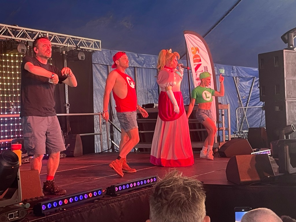 Anyone who knows me in real life will know that I absolutely adore pun-infused drag names so when I announced a queen called Mary O’kart was set to appear to Brighton Pride I knew I had to make sure I had a space in the cabaret legends tent. The other element of drag that I thoroughly enjoy is when performers have meticulously made sure that their performance had a coherent and cohesive theme which Mary did the highest degree. This new queen paid homage to her namesake by coming out in a pink, princess peach inspired looked flanked by two dancers dressed as Mario and Luigi. On top of these visual queen also ensured that the iconic Mario sound effect played during every song transition to really drive home the overarching theme. My favourite track however was an adapted version of the Macarena that had been re-written with original lyrics. It must have been incredibly difficult to remember the amended lyrics to such an iconic song but I have to admit I have had the chorus refrain “Mary O’kart” stuck in my head since seeing this act live. This queen delivered my personal favourite performance on Saturday with a full-on production complete with wonderful thematic costumes, impressive dance choreography and incredible stunts (including a death drop and costume reveal) throughout! Mary even released a full recorded version of her performance at Brighton Pride on YouTube (available at: https://m.youtube.com/watch?v=i7AtGAnUwKA&feature=youtu.be) so you can check out this amazing show for free without the need to take the long journey to Brighton!