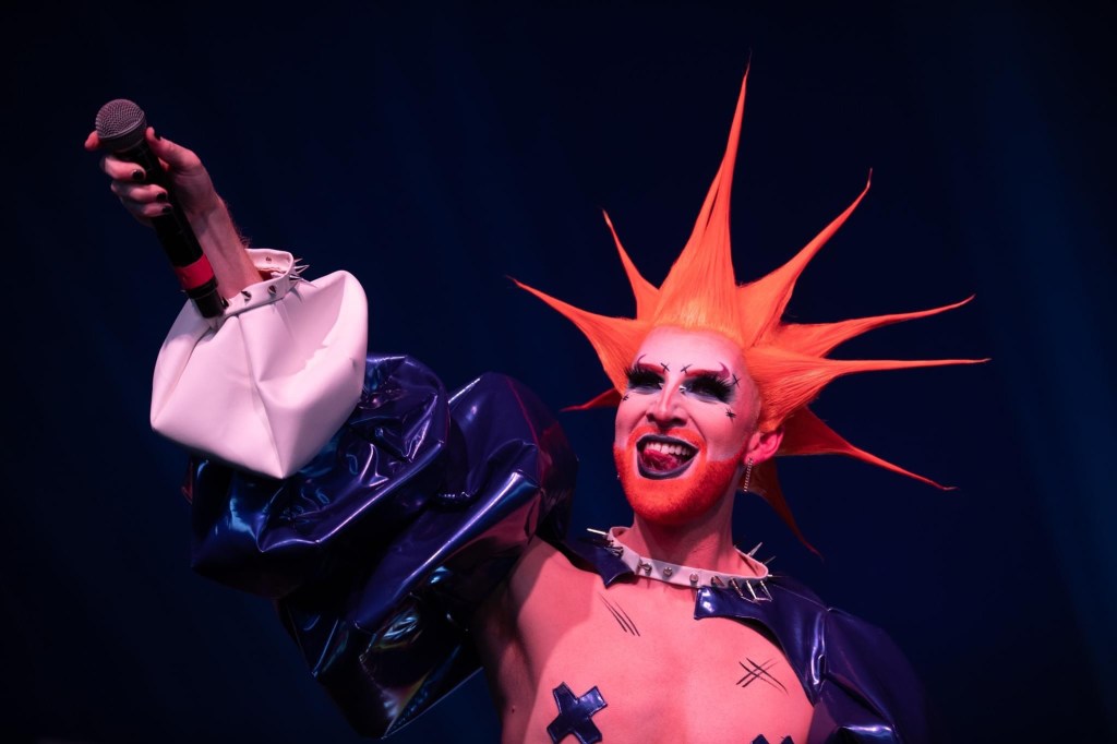 One of the acts I was most surprised to see was none other than the Ru Paul’s drag race season four contestant Copper Top. While this queen being on the line-up itself was not particularly a big surprise, what the queen decided to present to the audience was almost the polar opposite of what I expected from her time on the show. I vividly remember Copper going on the show talking about how she is an experienced pantomime performer and so I was expecting camp comedy but it was much more in the vein of pop punk. She came on with an intense ginger spiked wig and spikes all over her body which didn’t fit the family-friendly dame idea I had in my head! As she went home fairly early on her time on the show, I did not know that Copper was such a talented performer/vocalist with her performances of Confidence and Believer being a particular highlight! I was also very excited to see that Alfie Ordinary would be gracing the cabaret legends stage as this is someone who I had heard lots about but have never actually seen live. They graced the stage in a gorgeous red sparkly, devil-infused outfits as they delivered a wonderfully eccentric performance which the audience appeared to love! With a set list comprising of Hey Baby by DJ Ötzi, we are the Champions by Queen and Sweet Caroline (which I often associate with non-queer venues but the pride audience were loudly getting involved.) The energetic performer had everyone singing and dancing alone which really helped to get people ready for the headline acts later in the night!