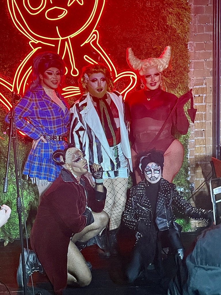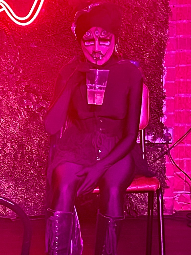 One of my favourite performances of the evening came from the Bath-based drag performer Diomede who I have to admit was not someone I was particularly familiar with prior to the event however has very quickly become my latest drag obsession! Their mesmerising performance of the Halloween infused, ABBA classic “Lay All Your Blood on Me” was the perfect choice too song to perform as it provided an opportunity for immense character work, is an iconically recognisable song that the audience loves and it tied into the spooky theme of the night. I am about to say something extremely bold here and state that this performance by Diomede was one of the greatest pure lip-sync performances I have ever seen live! There was very little reliance on props, choreography, theatrics etc and instead, the focus was fixed purely on the performance which they seemed to totally excel in! From the insane make-up to the flawless lip-sync, I was totally transfixed from the moment they stepped onto the stage in their demon-inspired look and is someone who is bound for incredible things very soon. If you haven’t already then I strongly recommend dropping them a follow on their Instagram (available at https://instagram.com/diomededrag?igshid=MzRlODBiNWFlZA==) as they are someone to keep an eye on!