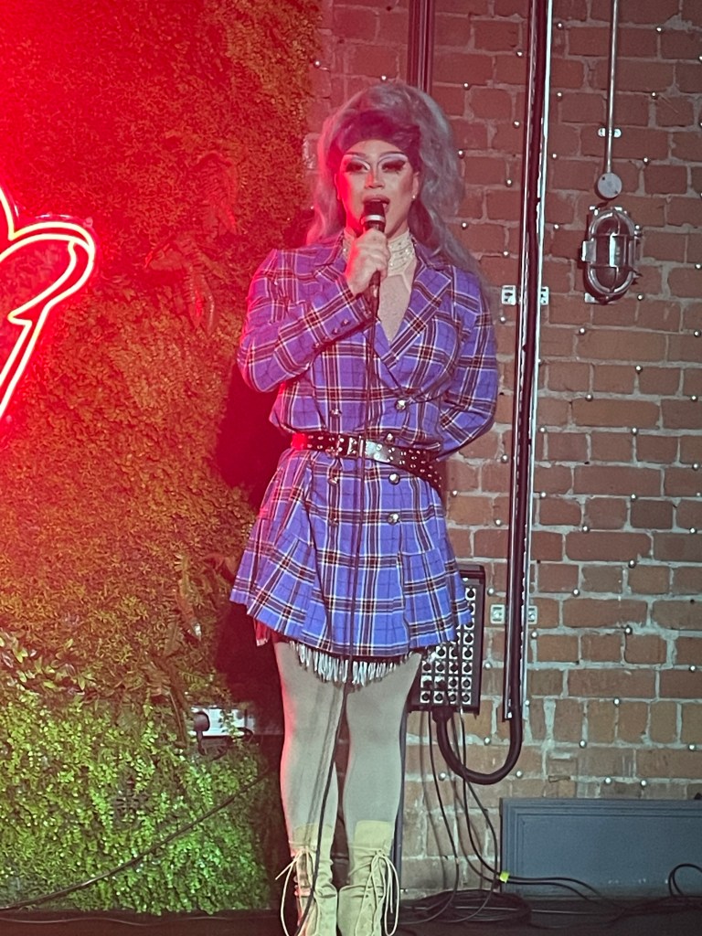 It is very clear that the next performer Glas is a massive fan of musical theatre as she had prepared a set highlighting musical theatre characters they think are going to Hell! The highlight of their set would have to be their rendition of “You’ll Be Back” from Hamilton and in all honesty I am surprised I haven’t seen more drag performers doing their version of this song as it can be extremely camp with the perfect amount of comedy sprinkled throughout. Glas seemed totally comfortable channel the unhinged ruler while simultaneously making the audience howl with laughter which not is not thing to balance!