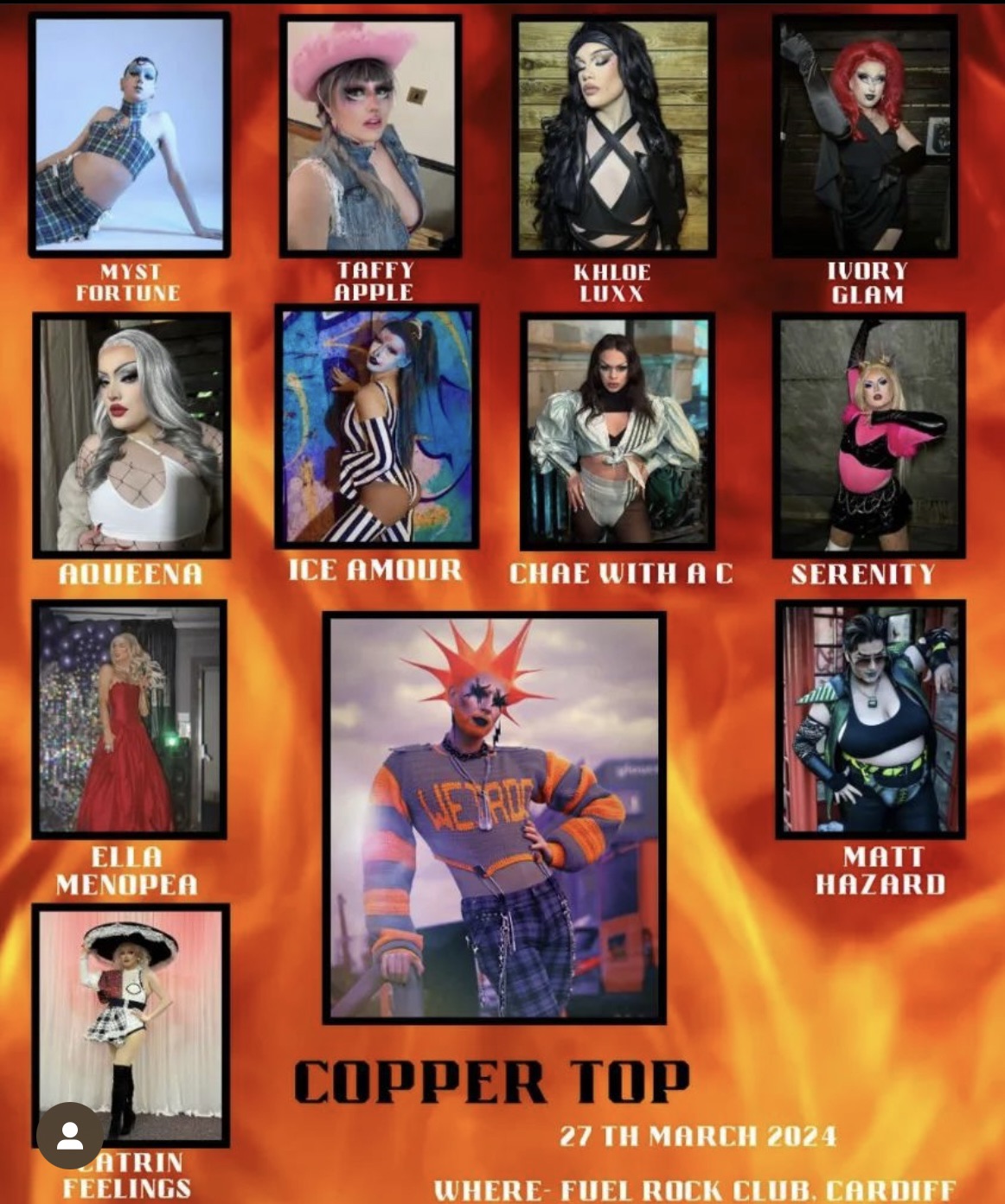 Overall, Cabaret of queerosities starring Coppers topp showcases the wide array of talent the Cardiff drag scene has to offer which is always a fantastic thing! What was absolutely fantastic was the fact that the headliner Copper made sure to sit amongst the audience during the first act to show that they truly support local drag. Seeing the established performer share a stage with new and rising performers in the latter sections of the show helped to create a truly welcoming and supportive environment which is exactly what new performers need! I would rate this event 5 out of 5 stars!