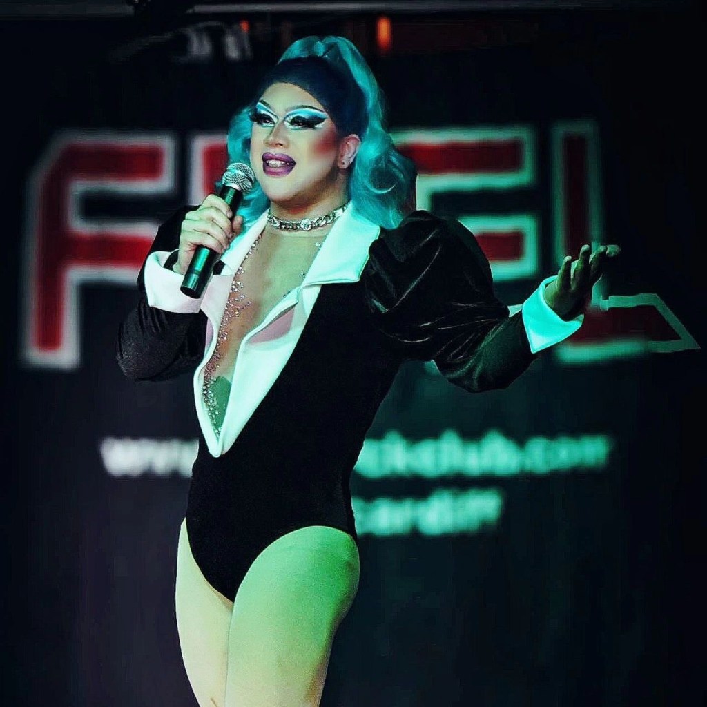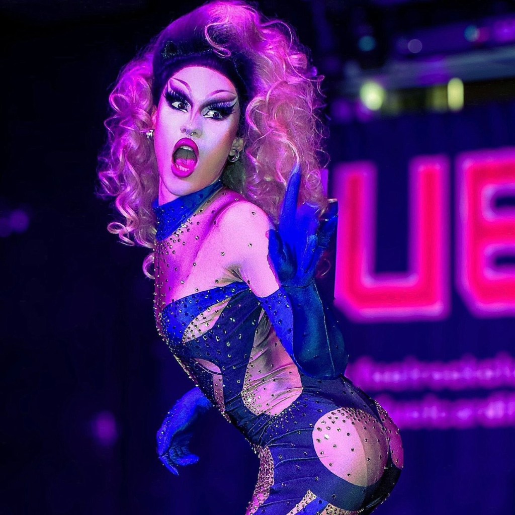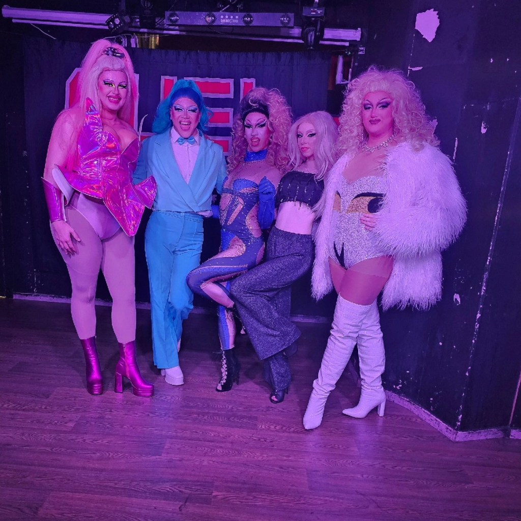 Completing this line-up was another queen I was not particularly familiar with but going forward I am absolutely going to be keeping an eye on Elissa Cortez’s their set began with a fabulous rendition of Mrs Baltimore Crabs from Hairspray (which was actually one of the last musicals I ever performed in) Elisa had clearly thought about every detail of her performance as the silver dress she decided to wear looked extremely fabulous which matched the song perfectly. At one point in the set, they looked out into the audience for an Elphaba to perform alongside them for a tribute to one of the biggest musicals to ever exist Wicked. You know we never miss an opportunity to get onto a stage and I thought it would be a dazzling vocal showcase of defying gravity as this has become somewhat of a drag staple in recent years but instead, I was hilariously used as someone in need of a “popular” style makeover. As we sat on the chair staring into the audience Elissa carefully danced around us using us as an image of someone in dire need of a change. The audience seemed to really enjoy this number and we thoroughly enjoyed being invited to be even just a very small part of the routine! My favourite performance from Elissa however came in the second act where they decided to showcase their incredible dance abilities with a high-energy kinky boots medley. At one point they even pulled out a gorgeous backwards handspring in heels which was incredible to watch!