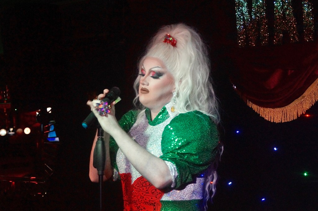 The first performer of the night was a queen I was not particularly familiar with but is absolutely someone to keep an eye on! Swansea’s Anita Fag graced the stage wearing a gorgeous red outfit complete with a match red wig but the highlight of this first look for us was the cigarette ears that were clearly a homage to her namesake which we thought was very clever. They delivered one of the best performances of “Don’t stop believing” by Journey that we have heard in a very long time while showcasing her incredible vocal abilities. This song is known for its crazy vocal slides and Anita sounded absolutely incredible at every point in the number and managed to perform these slides beautifully and effortlessly! Their second performance of the evening paid homage to the iconic Pete Burns by performing “you spin my head right round” by Dead or Alive which is a unusually difficult song to perform vocally but Anita did not seem fazed in the slightest! At an almost total contrast to her earlier vivid red look , Anita donned a black and white ensemble that was easily recognisable as a Pete Burns inspiration as she yet again showcased her vocal talents which the audience went absolutely wild for!