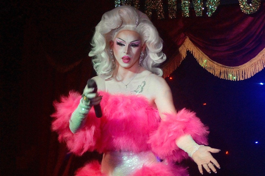 The Cardiff heat of queen of the palace was hosted by the fabulous Gigi Spot (who we recently saw host a bottomless brunch at Coyote Ugly) who made sure the night ran smoothly. As there was a massive nine performers on the lineup each doing technically three performance throughout the evening Gigi had to make sure that each act was introduced , performed and were off the stage as quickly as possible otherwise the night could have quickly spiralled into the early hours of the morning. This ushering of the acts could have quiet easily seemed out of place or as if Gigi was literally pushing the acts off stage but the host was able to make this look relaxed , respectful and effortless so the audience forgot about the very right time frame. It was also Gigi’s responsibility to ensure the audience know what was happening at each point of the show as the night was split into three distinct sections each of which had the queens showcasing a different set of skills. This was a brand new competition to me (and a brand new structure I had not experienced before) but Gigi was able to explain each section in an easy to understand way so that everybody knew what to expect throughout the evening. On top of all this admin Gigi was also able to squeeze in a selection of brilliant jokes which had the audience laughing throughout.