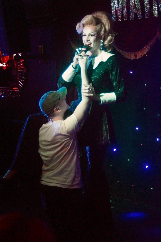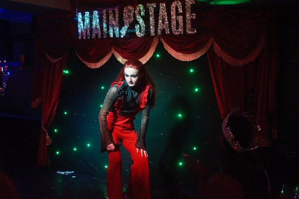 The next performer to grace the stage was the amazing Ivory Glam (who we have also interviewed on our YouTube channel at https://youtu.be/DkydmBZr3J8?si=pWFAID6P6LkieMfh) who decided to showcase both their lip-sync and live singing abilities. Their first performance of the night saw Ivory bust out her rendition of “Creep” by Radio head which as always is absolutely stunning to listen to as she nails every single note of the song. The creative decision to strip back the theatrics , tricks , dancing etc meant that the audience could focus on Ivory’s vocal talents. Regardless of how many times I seen Ivory perform this song , I am always in awe of how effortless and easy she makes the insanely high-pitched sections of this song sound. Their second performance of the evening paid homage to the queen of the whistle tone Ariana Grande with a medley of the singers greatest hits as Ivory took to the stage in a wonderful red outfit complete with a crystallised black pony tail. Ivory made sure to use every inch of the stage and audience area to create an immersive and interactive performance and even selecting a key audience member and forcibly putting of lipstick on them.