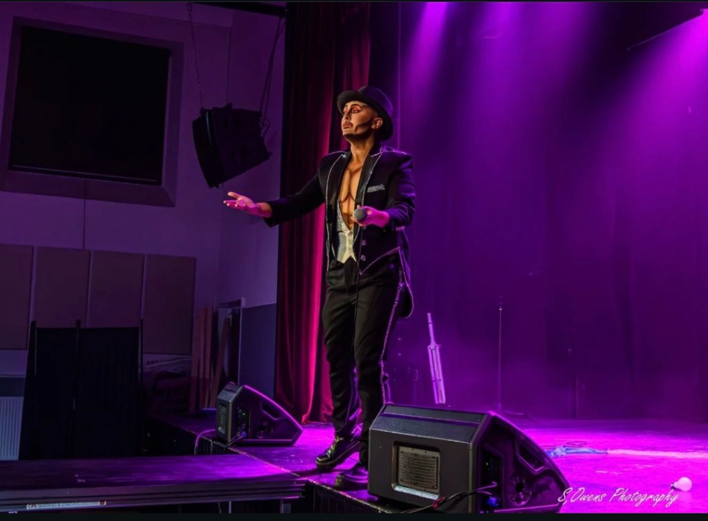 We were recently lucky enough to sit down and chat with the queen of Ceredigion (which you can watch at https://youtu.be/HjUcWnKgyAU?si=uqRviF1IwfDuBdfD) where we discussed how they wanted to showcase the true breadth of talent they possess when they have creative control over her own events which they absolutely did at this latest event! Serenity took on hosting duties for this event where they helped to introduce every act, keep the audience’s energy high throughout the show and ensure the night went as planned. On top of this, the audience was also treated to a series of performances from Serenity! Having seen Serenity perform a few times previously (including most recently at Cabaret of Queerosities which you can read about at https://rhysreviews.com/2024/02/01/cabaret-of-queerosities-2-production-review/) I am aware of how much of a talented dancer they are so seeing them open the show with a high energy rendition of “rhinestone heart” by Slayter where she showcased all of the mesmerising dance abilities she possesses! She owned every inch of the stage and the audience went absolutely wild which was particularly important as this was the first number of the entire event which ensured the audience started already extremely excited for what else they would see throughout the evening. In an almost total contrast, Serenity also showcased a performance of “Kill Bill” by Sza where the queen showcased how much of an emotive storyteller they are! The number focussed more on emotion with Serenity using every inch of her body (including a series of wonderful facial expressions) to emote the power behind this song. This routine climaxed as Serenity performed an incredible blood-splatter gag that added even more theatrics to this powerful performance. The highlight of the evening however occurred at the closing moments of the event as the host Serenity gracefully glided onto the stage in a show-stopping sparkly black gown complete with a gorgeous blonde wig that just screamed classic glamour and grace. This clear intention of channelling classic beauty made perfect sense as the queen of Ceredigion showcased an incredible rendition of the powerfully moving “Unbreak My Heart” that had every single audience member close to tears. In fact, at the later part of the performance, numerous audience members began romantically slow dancing around the stage which helped add to the heartfelt nature of the song being shared. Having known Serenity for a little while now, I know they have made a name for themself for their high-energy, choreography-heavy routines (which we did see throughout this show) but seeing this queen slow it down while showcasing their wonderful vocal abilities was absolutely amazing!