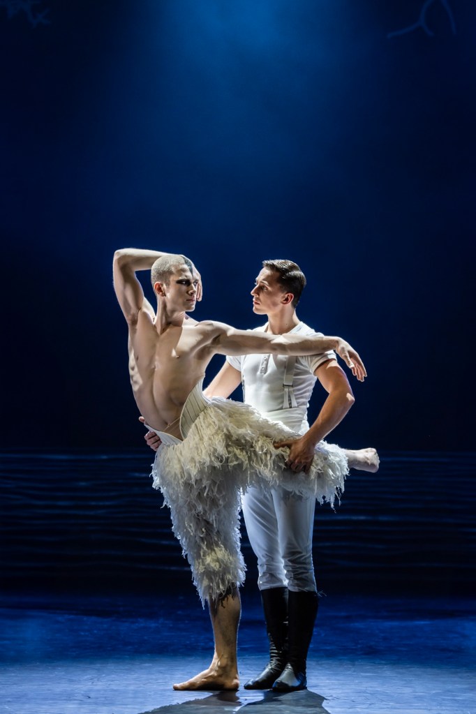 My favourite dance sequence in this production however occurred after the prince had discovered a mysterious flock of swans and they form an instant connection with one swan in particular (played by the wonderful Jackson Fisch.) What I thought was particularly clever about this sequence was the fact that on top of incredible ballet being showcased , the choreography also contained a series of swan-inspired posses that really fitted well with that moment in the show. When the prince and the swan finally get the opportunity to dance together the magic truly started! This sequence was constructed in such a way that the audience could clearly see the prince go from being insanely hesitant to totally embracing his suppressed feelings as he began dancing with the mysterious swan. Both Stephen Murray and Jackson Fisch (as the prince and the swan respectively) clever have fantastic chemistry both on and off stage as they worked flawlessly together. This tender and powerful sequence really captured the freedom of giving yourself over to the feelings that the prince had spent so long ignoring. This significant moment was not only a turning point in this character’s trajectory but also helped to build immense amounts of sympathy towards the characters which was especially amplified in the closing moments of the show!