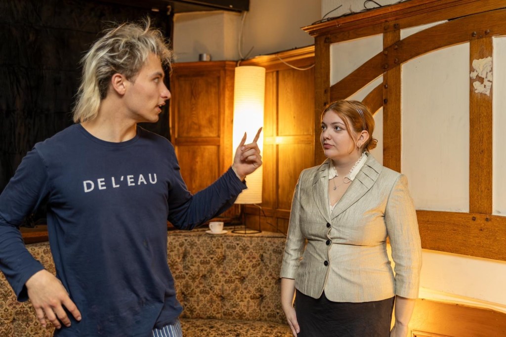 One of the many standout performances throughout this production would have to be the incredible Aeva Skye who took on the titular role of Dorian Gray themselves. Throughout the production, I could not help but notice how graceful and elegant Aeva presented herself as it not only played to the idea that her character was created to be extraordinarily beautiful (who essentially all of the characters fawned over) but also played on the actor’s own dance-based talents. Their hold of their body and footwork placements hinted at some form of dance training but it wasn’t until the unexpected ballet solo at the end of act one that it was clear these artistic choices were not just stylistic additions but were in fact Aeva playing to her strengths. This dance break came at the perfect point in the story as it represented the overwhelming nature of complex emotions the character’s feelings but also added yet another layer of production value helping the production turn the upstairs of a pub into a full theatrical experience! The second act of the show saw this character take a much more intense and dark path as these dance and elegant elements faded away as the character fades away from an object of desire to an unhinged outsider who will do anything to project their vanity. This was flawlessly portrayed by Aeva and the reduction of poise was a small detail that really added to the character’s journey showing not only a fantastic attention to detail but also demonstrating the skill of the performer behind the role!