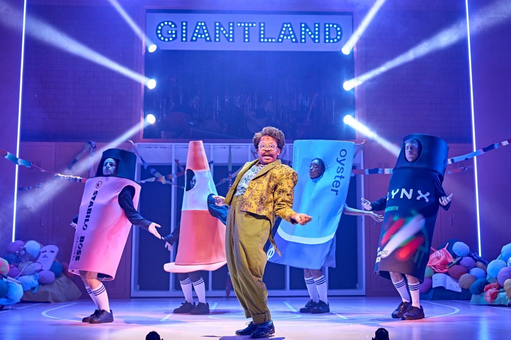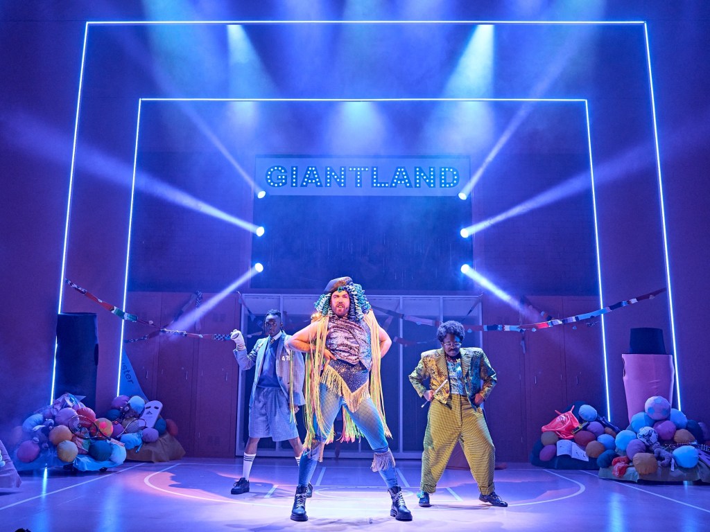 As highlighted earlier this production is unique in the fact that not only do the drag-infused characters play an active and major role in driving the show’s narratives but they also share a unique romance storyline which is not something I have seen before! Both the Fairy Godfather and Momma Trott are archetypes that are often portrayed as observers of the stories unfolding rather than actually being a part of the events so having them as central characters who develop feelings for each other was a fantastic twist in panto tradition. This unique pairing is obviously a fantastic representation of queer romance which can only have a positive effect I the wider society which I personally think is fantastic! I thought that I thought it was perfect idea to have these two officially open the second act with their rendition of the iconic “Formation” by beyonce and the viral “not like us” as it not only helped to make a full circle narrative (as The Fairy Godfather also opened the first act) that helped to keep the audience hooked but it was the perfect injection of energy to get the audience back into the story after the short intermission. One of the songs that makes sense in terms of narrative (instead of just being a nod to pop culture) was this pair’s rendition of “Where the hell is my husband” by Raye that takes place in a Scooby Doo style chase scene where the pair are looking for each other in Giant’s land. However, it was not just these panto archetypes that were showcased during this number but the ensemble made a clear point to show they are also incredible as they deliver a dance masterclass including a section of voguing that I really loved! One of the most fantastic pop culture references occurred in act two when the villain of the story is made aware that a group of intruders have entered the giant land. This leads to a series of live footage frames being shredded as it suddenly pans to The Fairy Godfather and Momma Trott are caught cuddling up to each other as “yellow” begins to play which was an obvious yet hilarious homage to the viral moment a CEO and his mistress were caught embracing at a Coldplay concert. It may have taken certain audience members a few seconds to catch up on the joke but once it settled they all erupted in laughter!